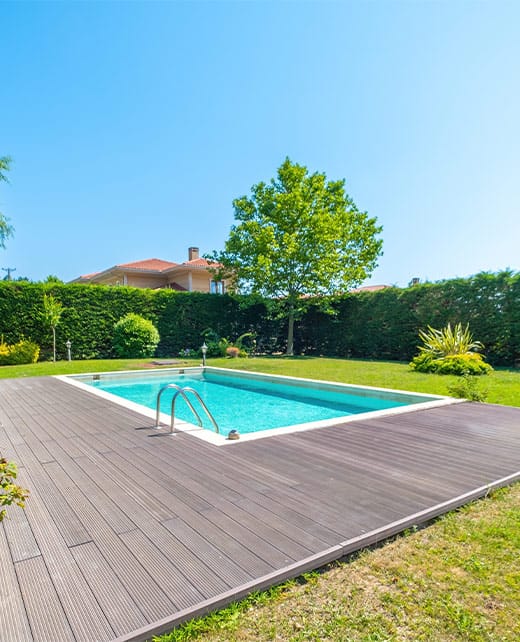 Une piscine bien intégrée passe aussi par un environnement soigné. Nous réalisons les margelles, plages et autres aménagements extérieurs (terrasse en bois, pierre, carrelage) pour sublimer votre bassin et en faciliter l’accès.