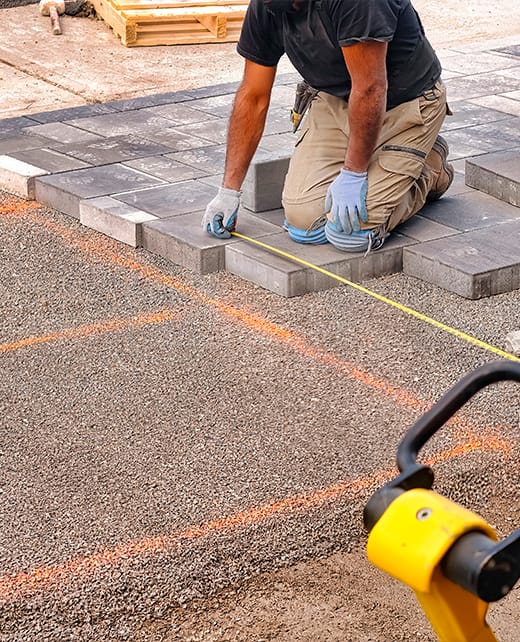 Installation de pavés en pierre naturelle, béton ou autres matériaux pour un aménagement élégant et robuste. Idéal pour les allées, les cours et les terrasses, le pavage apporte du cachet et une finition haut de gamme à vos extérieurs.